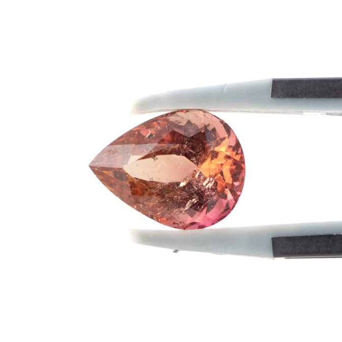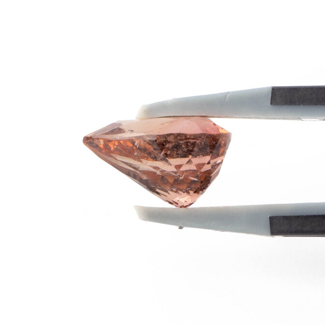 透明な輝きあふれる希少な赤系カラーのトルマリン。ロゼのワインを彷彿とさせる澄み切った美しさは清々しく、一粒で存在感があります。オレンジがかった赤色の、柔らかなグラデーションが持つあたたかでまろやかな色合いは、じっと見つめていると忙しい日常から解放されそうな非日常感です。