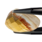 ダブレット制作は絵画や風景、幾何学模様を連想させる石のセレクトから始まります。山ほどある原石からどのように模様を削り出すか。石取りと呼ばれる工程で様々に検討し、ここだ!という部分を薄い板状にカットします。その後、透明度の高いクォーツやルチルクォーツと接着し、カットと磨きを施します。クォーツの磨きが悪いと美しい模様が引き立たないので、磨きはダブレットストーンの完成度を左右する大事な工程と言えます。経験豊かな職人さんの丁寧かつ高いカット技術があるからこそ、クォリティの高いダブレットを生み出すことができるのです。