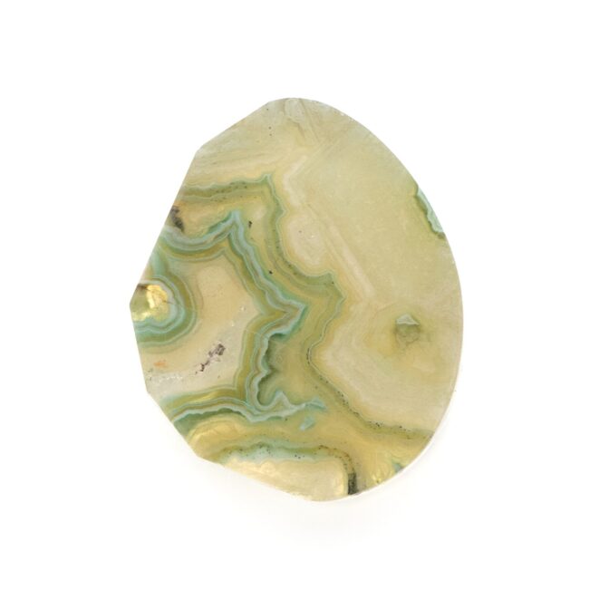 静かな水面に広がる波紋を思わせる繊細な模様。水滴を何粒か落としたかのような淡いグリーンのレース模様のグラデーションを、キラキラと輝くクォーツが美しく飾ります。輝く水面の反射をそのままルースに閉じ込めたとてもレアなダブレットストーン。光の当たり方によってゆらめくように表情を変え、アゲートに射すクォーツからの光が芸術的な紋様を描きます。