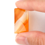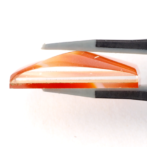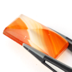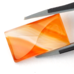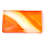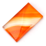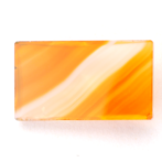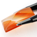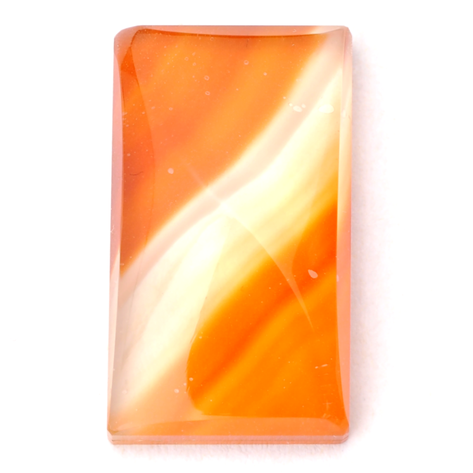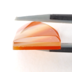 夕焼け空の鮮やかなオレンジをほうふつとさせる色合い。柔らかな曲線を描きながらグラデーションになっている模様は、さながら沈む太陽を映した波打ち際のよう。強い色のはずなのに、半透明の優しい質感でふんわりと内側から発光していルように見えます。珍しい石ではないのですが、それ故に美しく磨かれた石を探すのが難しく、クォリティの高いルースはとても希少です。