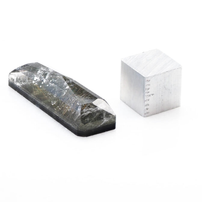 人気のルチルクォーツxスペクトロライトのダブレットが再入荷。