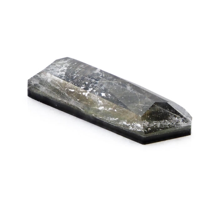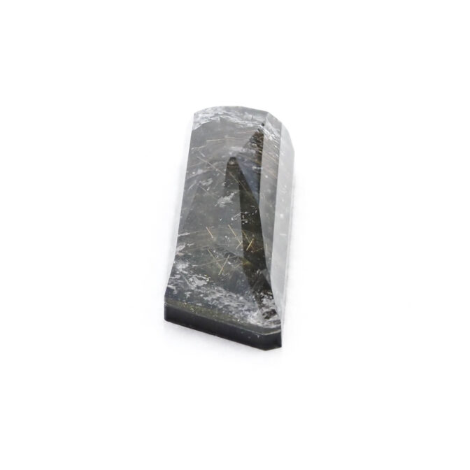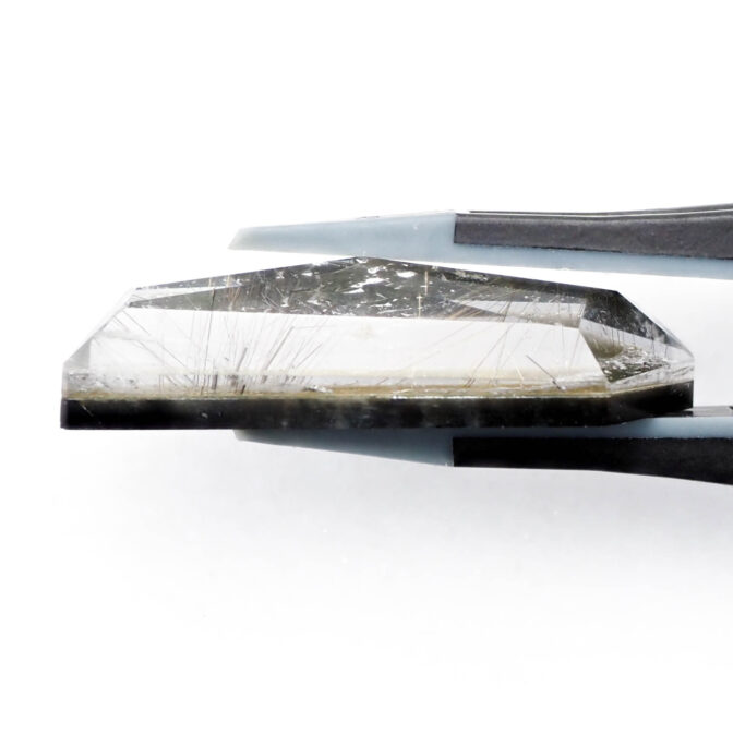 漆黒の宇宙にきらりと輝く流れ星を抱え込んだような、壮大なスケールをそのまま宝石に閉じ込めたような神秘的な様子は、何度見てもため息が出てしまう美しさ。角度を変えるたび、細いルチルが光を受け止めながらなめらかにきらめき、黒い背景に引き立ちます。シュワシュワとしたインクルージョンも、まるで夜空に輝く星雲のような趣です。