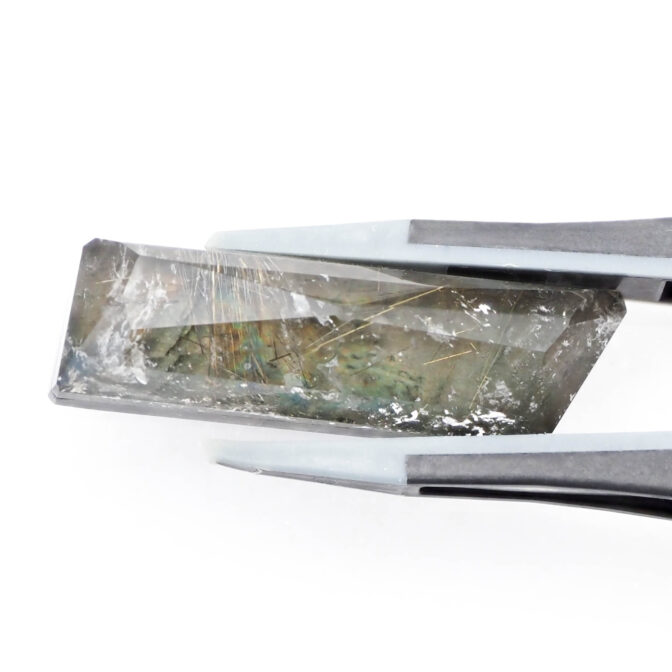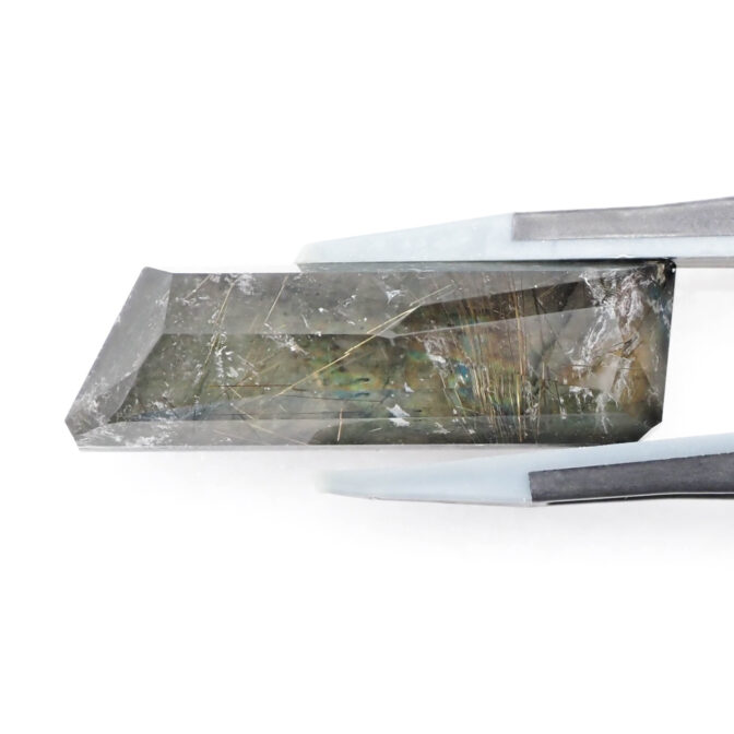 このページでご紹介しているルチルクォーツxスペクトロライトは、ラブラドレッセンスとルチルを余すことなく鑑賞するのにぴったりな透明度の高さ。漆黒と透明の不思議なコントラストと浮かび上がるラブラドレッセンスは、いつまでも眺めていたい美しさです。個性的かつ斬新な石取りは、甘すぎず辛すぎずどんなテイストにも合う仕上がり。大ぶりリングでも、個性輝くペンダントトップにもお仕立てしても素敵です。ぜひ、ジュエリーにお仕立てして特別な美しさを身にまとってくださいね。
