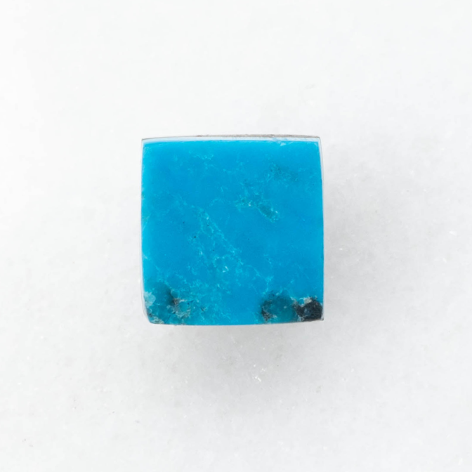 多孔質で汗や油分に弱いとされるターコイズですが、クォーツで表面をカバーしたことで、扱いやすさと強度が格段に上がっています。ただし、裏側には何の加工をしていないので、ジュエリーなどにお仕立の後はアルコール消毒などの前に外していただくことをお勧めします。