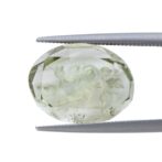 まるむ商会では、密かに人気があるグリーンアメジスト。グリーンアメジストとは、その名の通り緑色のアメジストのこと。実は、グリーンのアメジストは自然界には存在せず、天然での産出は現在のところ報告されていません。天然の紫アメジストを加熱した結果、グリーンに変化したものをグリーンアメジストと称します。とはいえ、アメジストを加熱すると、黄色のシトリンになる場合がほとんどで、美しいグリーンに変化するのはごく稀です。その為、市場での流通量はかなり少なく、大粒でインクルージョンが少ない上質なグリーンアメジストを目にする機会は滅多にありません。
