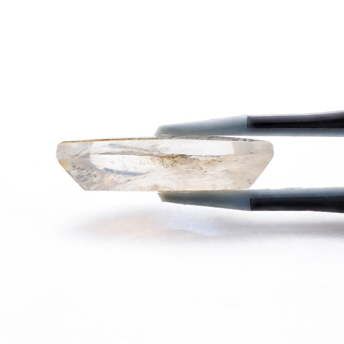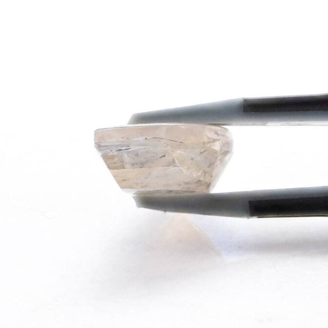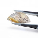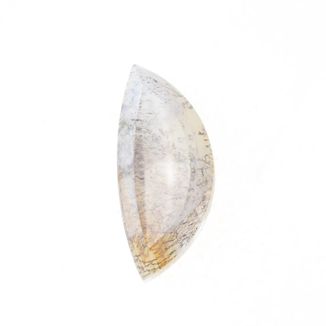 模様を楽しむには大粒にカットするのが良し。こちらのルースも大きめですが、細身のため、抵抗がない方は大粒リングにすると、美しさを手元で愛でられます。神秘的な半月シェイプを生かしてペンダントトップにするのも良いと思います。もちろん、ルースのまま手元で眺めるのも素敵な楽しみ方です。月夜にベランダで鑑賞したらふんわりと白く輝いてくれそうです。
