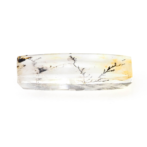 日本の外の世界で作られたルースなのに、そこに和を感じてわざわざ買い付けてしまう。こんな時に、自分が日本人であることを強く感じてしまいます。細長く端正でありながらも柔らかさを感じられる形なので、帯留にしても良いかもしれません。普段はリングやペンダントなどのジュエリーに加工することを意識していますが、このルースに関しては着物と合わせたら素敵だろうなぁ、などと想像が膨らみます。もちろん、いつものように普段使いで身につけられるジュエリーにしても、間違いなく映えると思います。