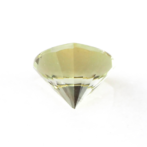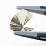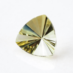 完璧なフラットに磨かれているテーブル面が窓のような役割を果たし、パビリオン側のカットが光を眩く反射する様子をしっかり観察することができます。完璧な全反射で、透明度が高いにもかかわらず、後ろの景色を全く透かすことがありません。ルースの中で放射状に踊る光が燦然ときらめき、檸檬色の輝きが溢れ出るようないで立ち。感動的な美しさをもつルースです。