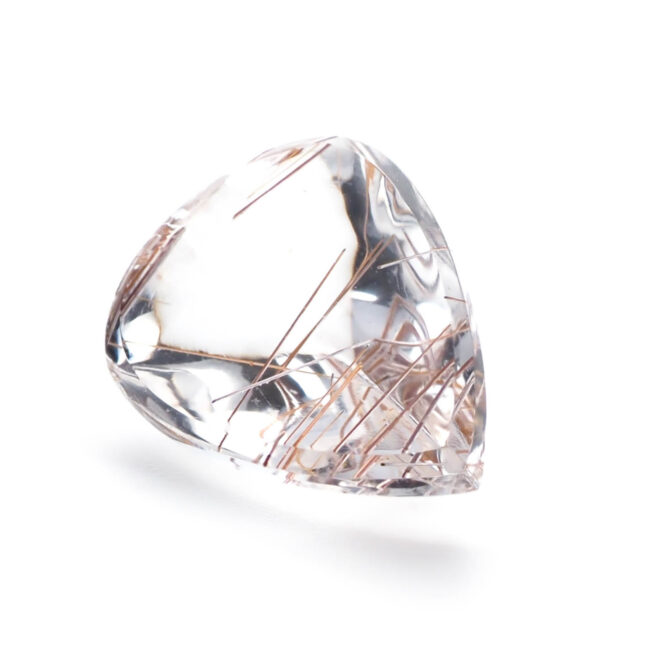 【ユニークなカットにピンク色のルチルがきらりと光る個性的なルチルクォーツ】