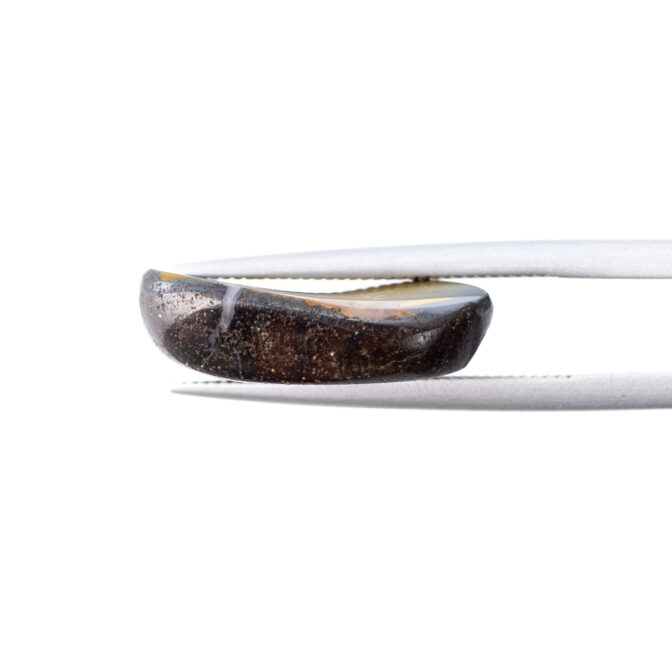 オーストラリア産ボルダーオパールといえば、虹色に輝く遊色の美しさが魅力。母岩があることで暗い色に見えるオパールがキラキラとまばゆい輝きを宿す様は、まるで星々がきらめく宇宙のよう!なのですが、今回セレクトしたルースは遊色がありません。