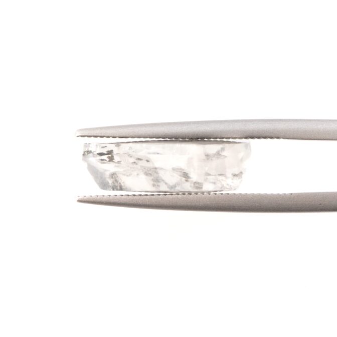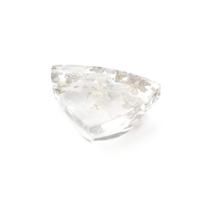 インクルージョンが入っているクォーツは純度が落ちるので、美しく磨くのは一般的にとても難しいとされています。このパイライトインクォーツは大変質の良いクォーツに包まれている上、カットも磨きもきちんと丁寧。パイライトの結晶をクリアに見せるため、すっぱりと潔くフラットに磨かれており、パイライトの結晶がはっきりと観察できるのも魅力。デザイン性に優れながらも石好きの心を揺さぶる罪なルースなのです。