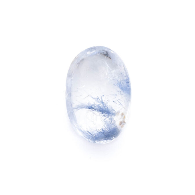透明度の高さとぷるりとみずみずしい輝きに惹かれてやまないデュモルチェライトインクォーツ。レンズのように磨かれたクォーツの中に、青紫の結晶がキラキラと輝く様はとても美しく、神秘的な表情です。