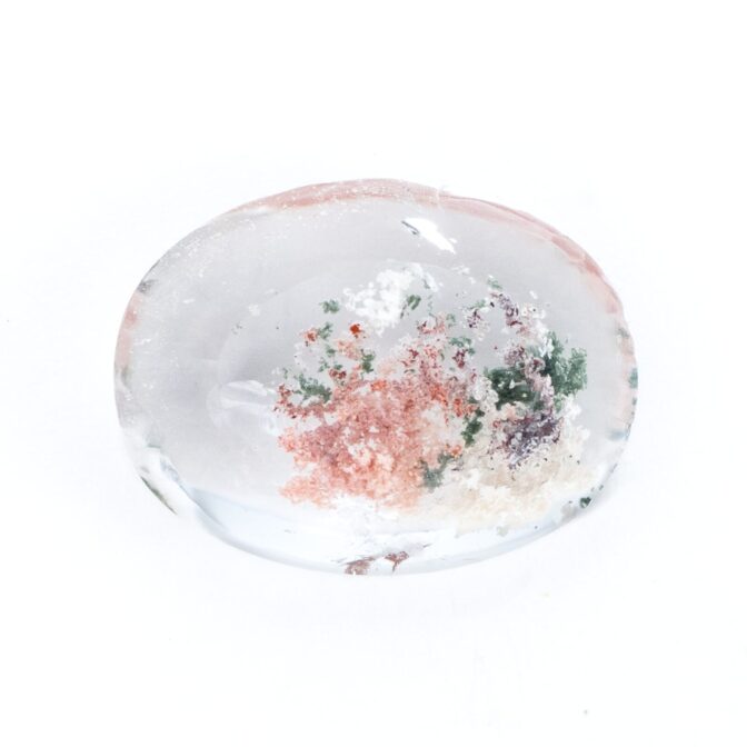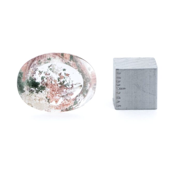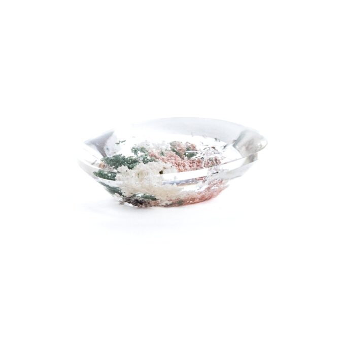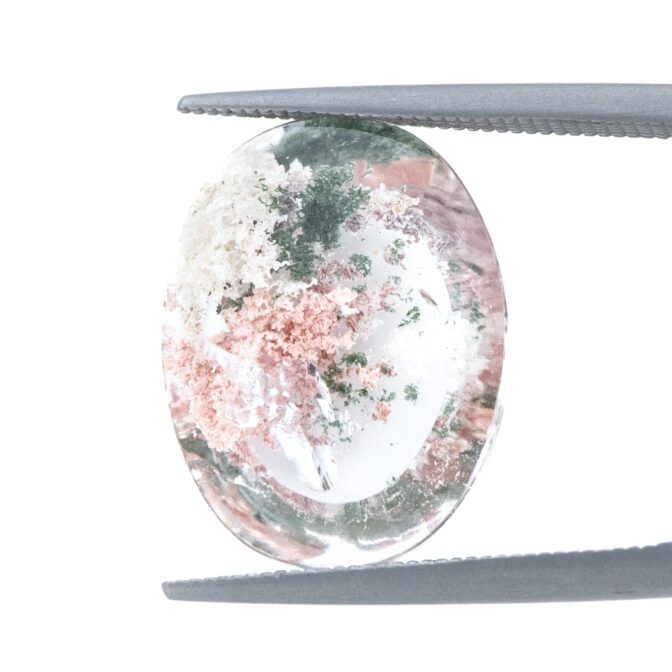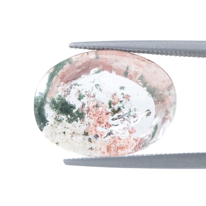 ガーデンクォーツにしては小さめサイズで、ジュエリーにするのにぴったりのサイズ感。リングにも使えそうですが、あえてルースのまま眺めるのもおすすめ。インクルージョンが持つ色彩の豊かさに、見つめていると心が満たされます。