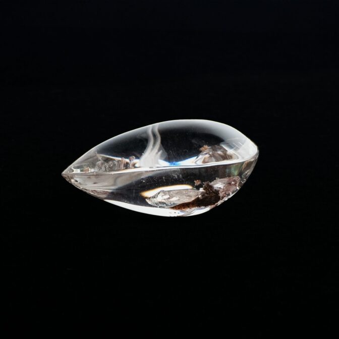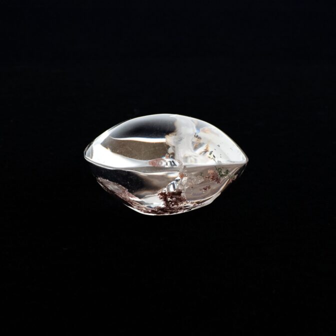 ガーデンクォーツは、まるむ商会にとって始まりの石。石を好きになったきっかけでもあります。それは、今を遡ること約十年前、タイに住んでいた時に初めて見た天然石ルースがガーデンクォーツだったから。そのインクルージョンの多様さ、景色の美しさ、水晶の潤んだような透明度に、ひと目で魅了されてしまったのを覚えています。それ以来、ガーデンクォーツは私の中で特別な地位を占めています。長い時を経て、水晶がさまざまな内包物を抱き込み、それがやがて美しい景色として人の目の前に現れる。ロマンあふれる物語を感じさせる石なのです。