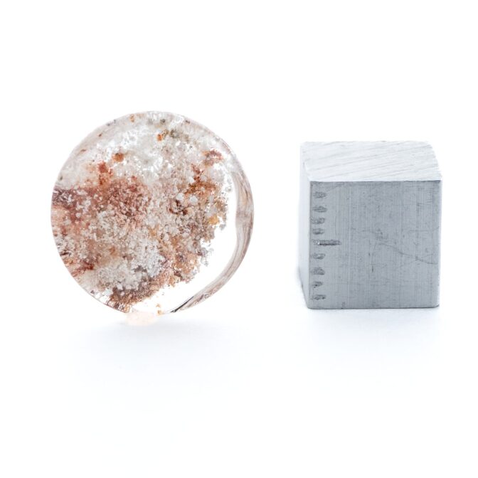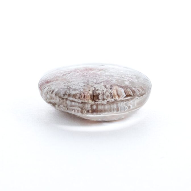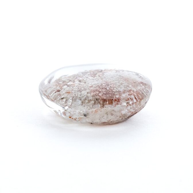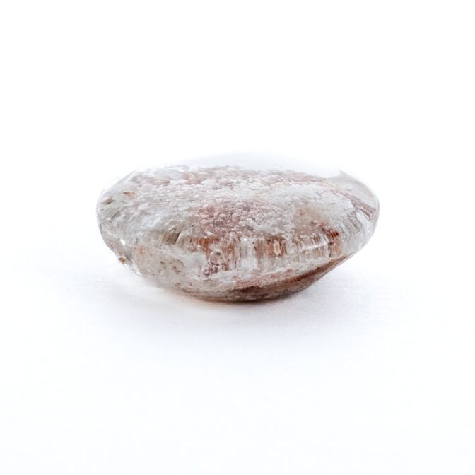 ガーデンクォーツにしては小さめサイズで、ジュエリーにするのにぴったりのサイズ感。ペンダントトップにも使えそうですが、あえてルースのまま眺めるのもおすすめ。インクルージョンが持つ色彩の豊かさに、見つめていると心が満たされます。