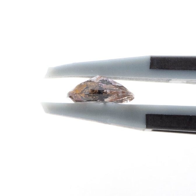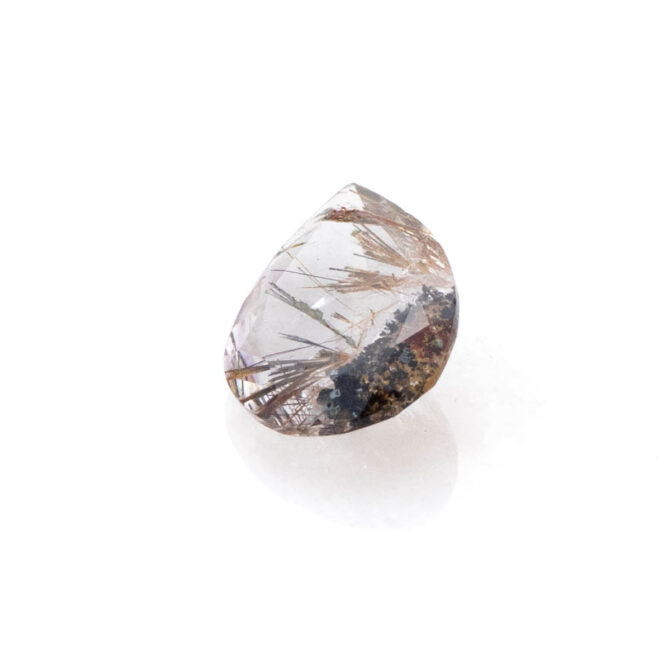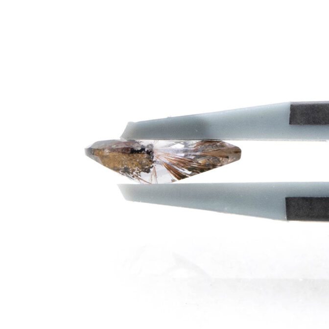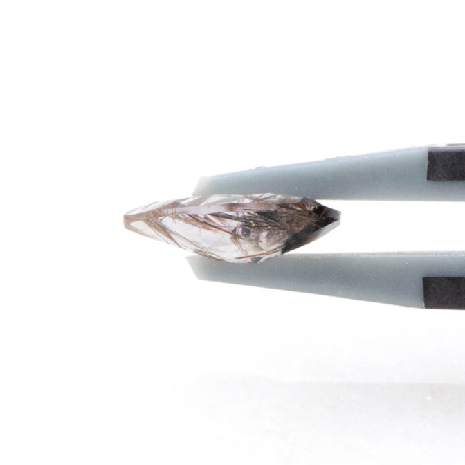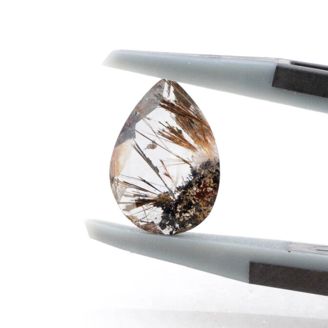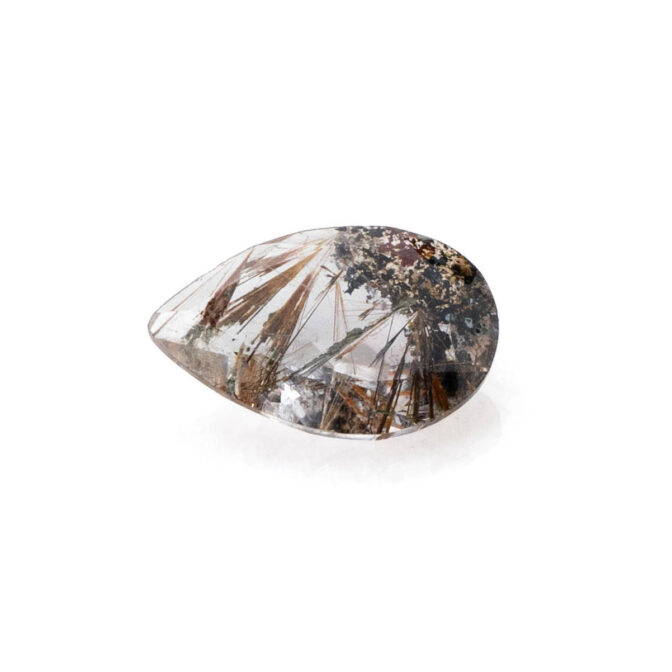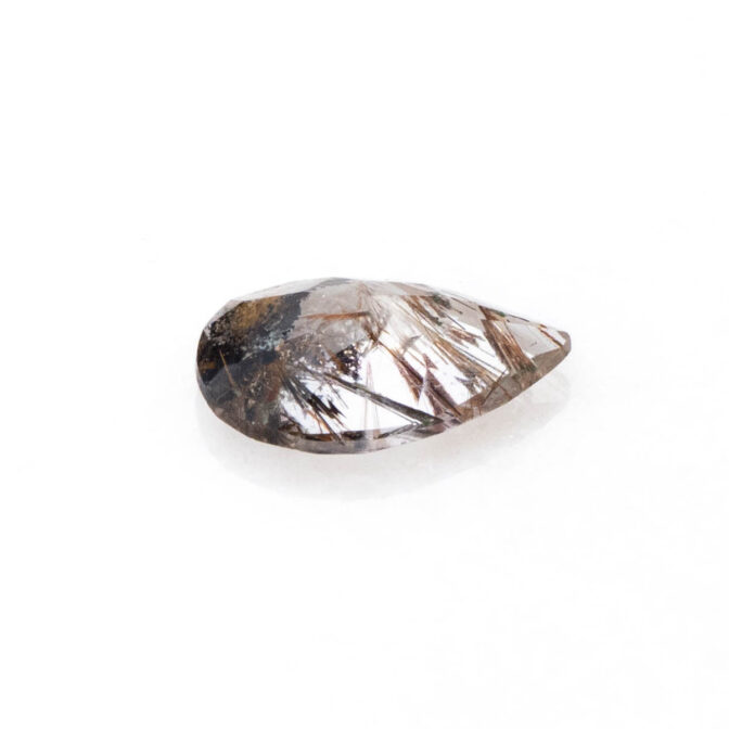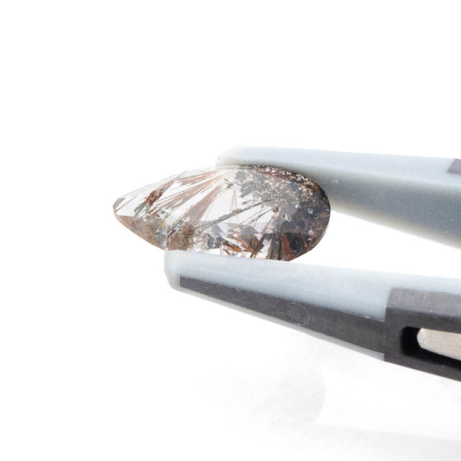 ティアドロップの下の方に溜まっているように見えるインクルージョンのかたまりから、シャープな針がちらほらと生えているようにも見える、面白いルース。シックな色味もとても素敵で、落ち着きがありながらもおしゃれな雰囲気です。