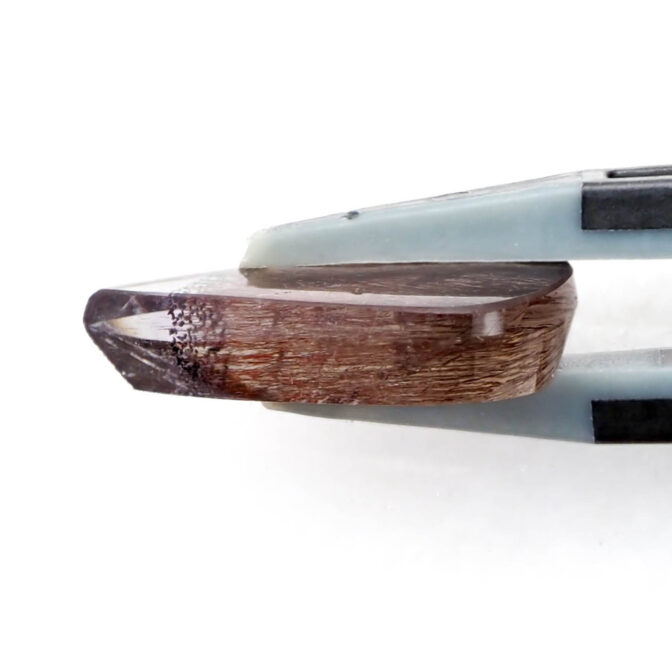直線と曲線の構成がスタイリッシュで、個性的な美しさを持つ一点もののルースなので、ジュエリーへのお仕立てもお勧めです。また、他にはない魅力を持つ石をお探しの作家さんにもぜひお手に取っていただきたいと思っています。