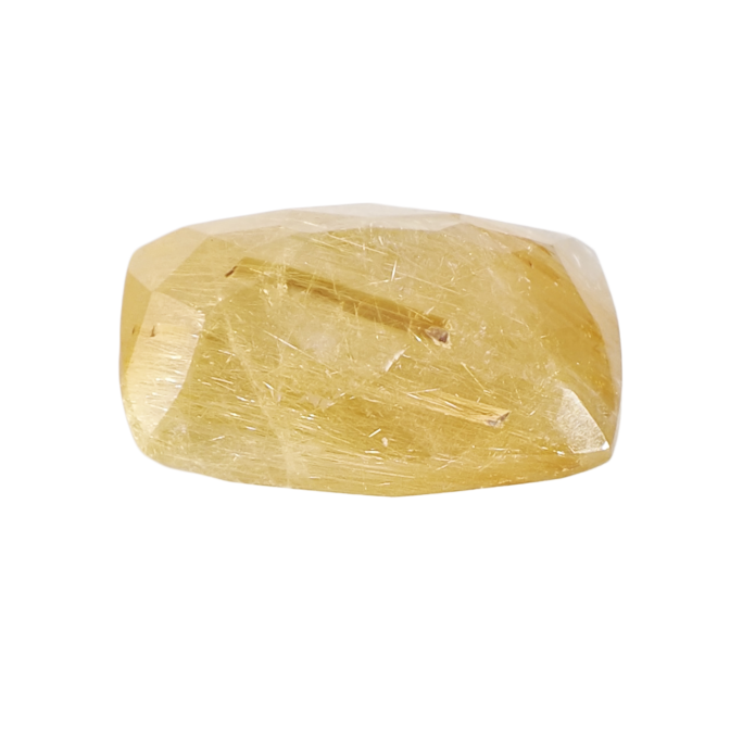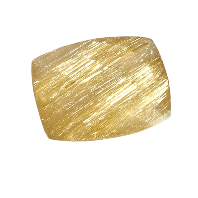 ベースとなるクォーツの透明度が高いこと、カットが美しいこと、ルチルの輝きが強いこと。この三つが全て揃ってはじめて最高に美しいルチルクォーツのルースが生まれます。このページでご紹介しているルチルクォーツは、石の価値を下げるような余計なインクルージョンがほとんどなく、黄金色と透明だけで構成されているレアなルースです。ルチルの美しさもさることながら、照りも強く角度を変えるたびにチェスカットがキラキラと瞬きます。