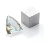 爽やかな初夏の空の色を思わせるスカイブルーのブラジル産アクアマリン。雲ひとつない空の色を一滴、透明なアクアマリンに垂らしたような色合い。にごりなくまっさらなブルーは、アクアマリンならではの魅力です。それだけでもとても素敵なのに、こちらのルースは黄金色の繊細な針が入っています。この美しい針の正体はリモナイトという鉱物の一種。ルチルにも似ていますが、よく見るとルチルよりも結晶が平た組みえるのが特徴です。