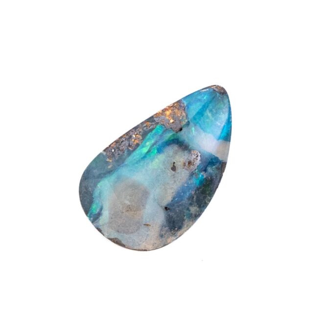 母岩の中にオパール層が入り込み、形成されるボルダーオパール。母岩の隙間からほとばしる遊色の輝きと、模様のように入り組んだ鉱物たちが織りなす美しさは、芸術品の域に達します。主にオーストラリアで産出しますが、残念ながら年々採掘量が減っており、価格が急騰している石の一つでもあります。