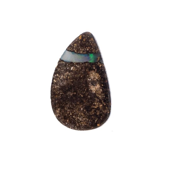 母岩とオパール層の色によって雰囲気がガラリと変わるのが、ボルダーオパールの面白いところ。明るい色の母岩と暗い色のオパールを選べば、その明暗の差が美しく、明るいオパール層と明るい色の母岩だと、華やかな雰囲気に見えます。また、暗い色の母岩に暗い色のオパールの組み合わせは、遊色の輝きが一段と美しく、深い魅力をたたえて静かに輝きます。一つとして同じ石はなく、いくら集めても満足するというところまで辿り着けない、そんな深遠なる神秘を宿す、魅惑的な石なのです。