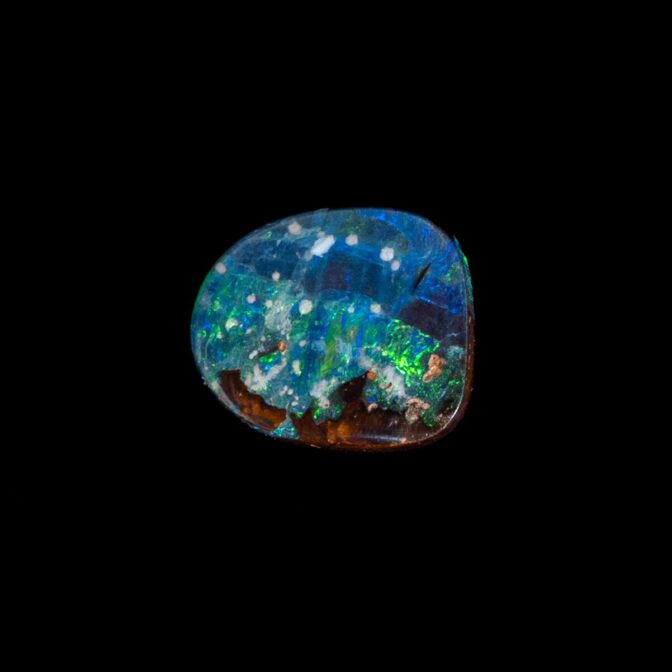 小さめとはいえど、鑑賞するには十分な大きさがあり、光が当たった時に溢れ出る遊色を楽しめます。深く、暗い地球の底から、きらめく閃光のように地表まで押し出されてきた美しいオパールを捕まえてルースに仕立てた一点もの。ペンダントヘッドに仕立ててればゆらゆらと揺れる大地の輝きを楽しんで頂けます。