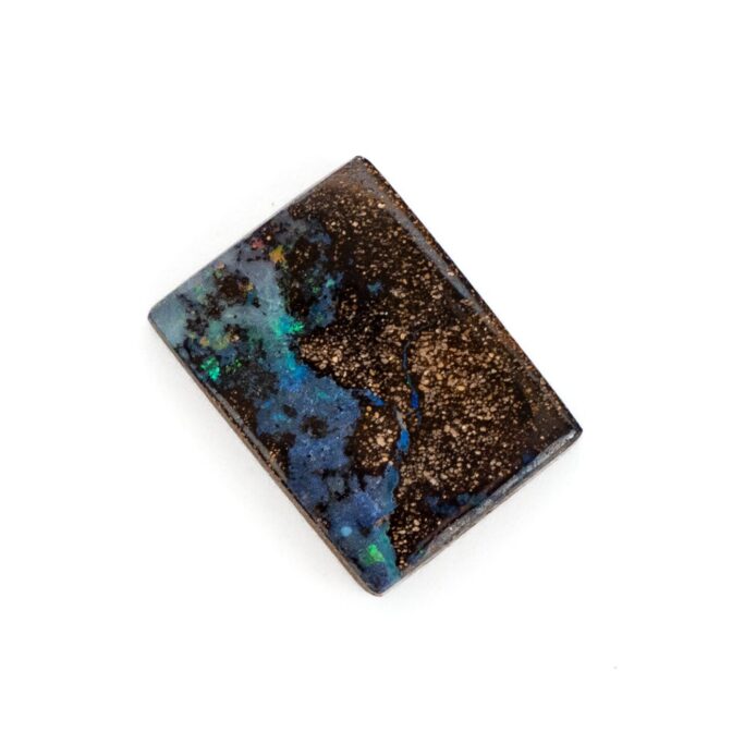 母岩の中にオパール層が入り込み、形成されるボルダーオパール。母岩の隙間からほとばしる遊色の輝きと、模様のように入り組んだ鉱物たちが織りなす美しさは、芸術品の域に達します。主にオーストラリアで産出しますが、残念ながら年々採掘量が減っており、価格が急騰している石の一つでもあります。