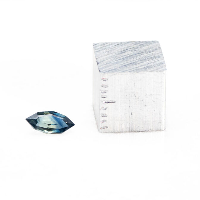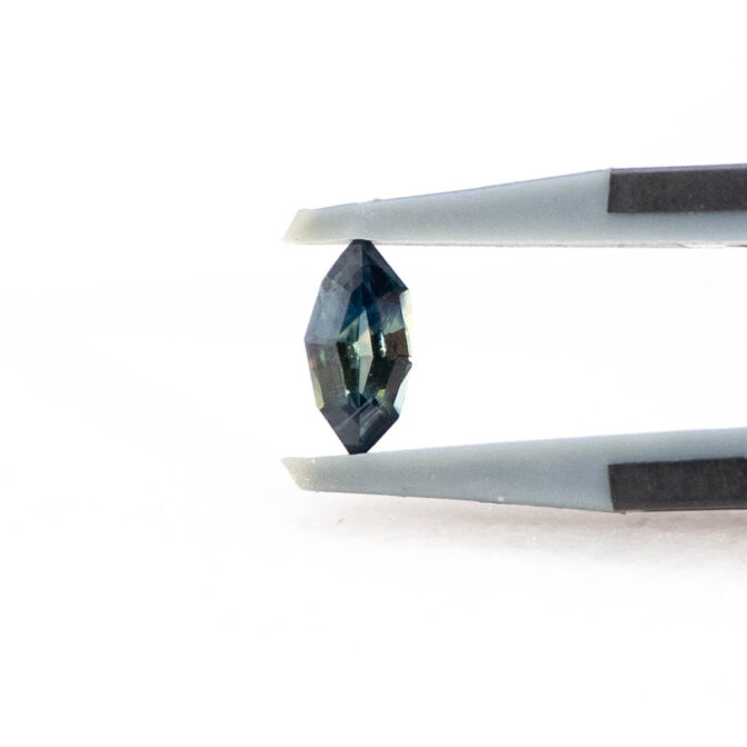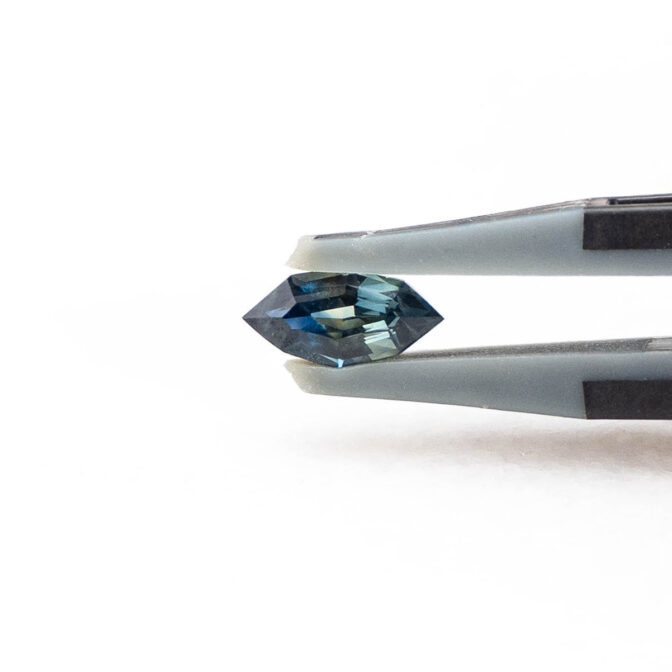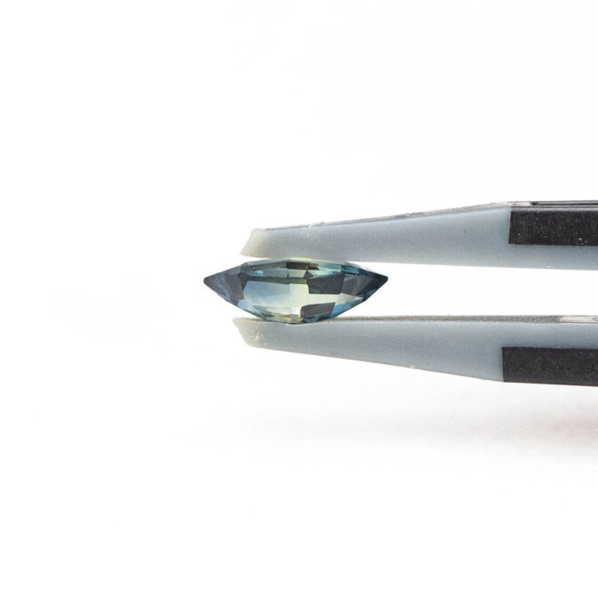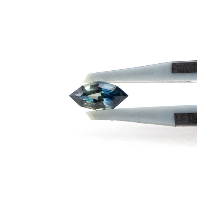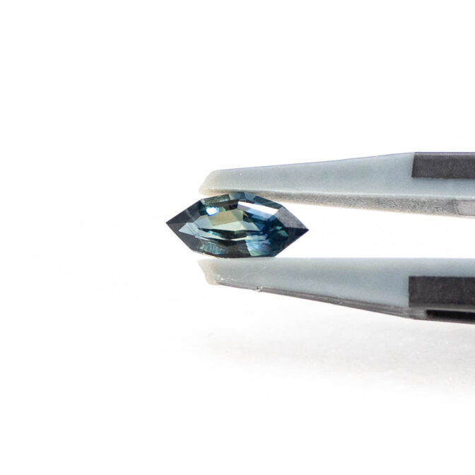 オーストラリアで産出するブルーグリーンのサファイアはティールサファイアと呼ばれます。鮮やかな青緑の鴨の羽のような色味は英語で”ティール”と呼び習わされます。バイカラーやパーティカラーと呼ばれる色むらがあり、そのために長年その美しさを正当に評価をされませんでした。市場の評価は均一な色の石の方が高いのです。しかし、この独特美しさを持つバイカラーが近年評価されるようになり、じわりと人気が出てきています。今後も価値が上がり続けることは想像に難くありません。