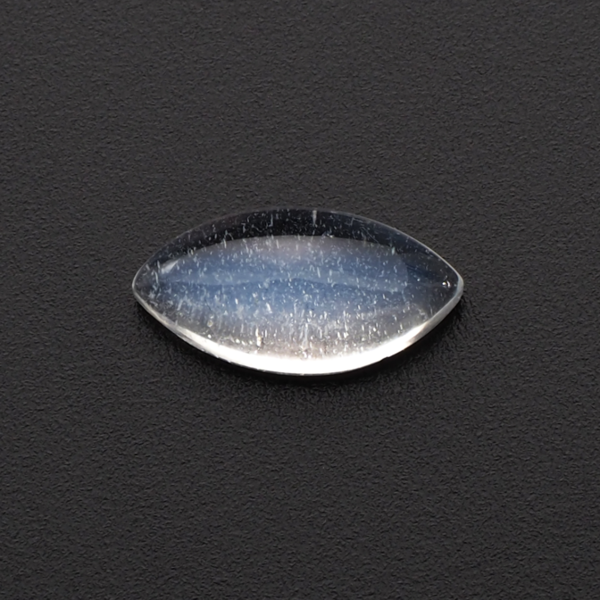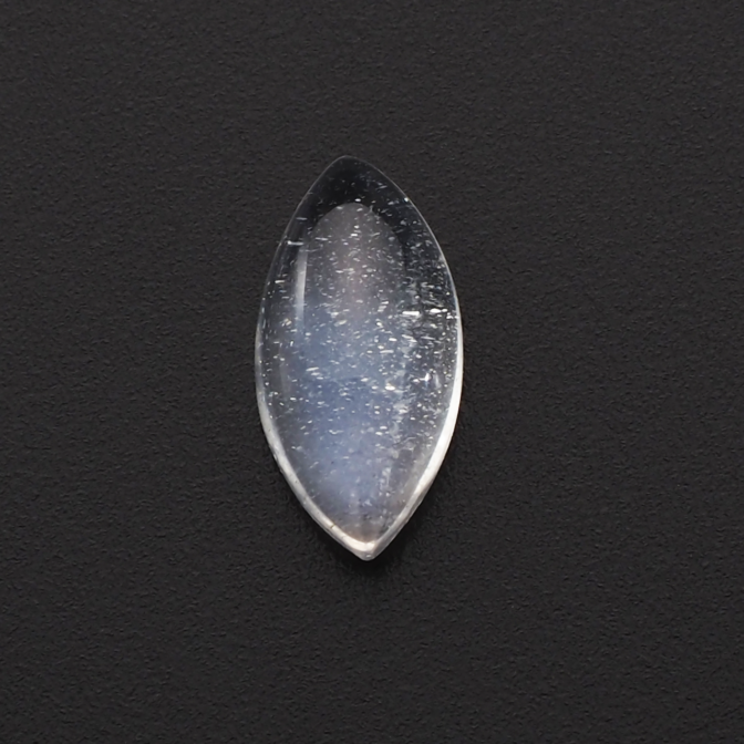 宇宙に輝く銀河を石の中に閉じ込めたような、インクルージョンがキラキラと輝く魅惑的なペリステライト。なだらかなドーム状に研磨されたカボションの表面に、青く神秘的なペリステリズム(シラー)がひらめきます。清楚で抑制された雰囲気の中、インクルージョンの華やかな銀色が一際映える美しいルースです。