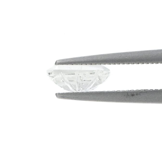 表面にはきらめくスタンダードなカットが施されており、ここだけ見れば普通。なのですが、よく見ると非常に複雑な輝きを放ち、思わず目を見張るほどの個性的な美しさに魅了されてしまいます。その秘密は裏面にあります。よく見ると、裏面のファセットカットの間を、流れるように細く繊細なラインが入り組むように彫り込んであり、これが複雑なきらめきを生み出しているのです。