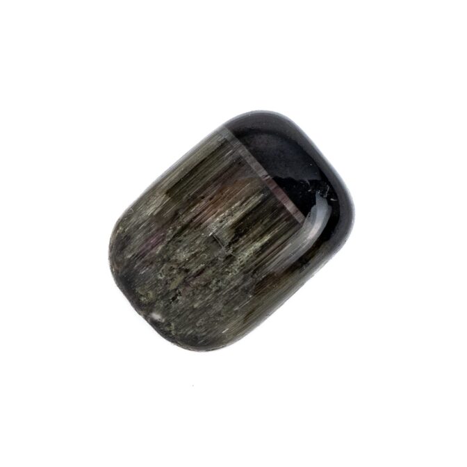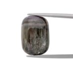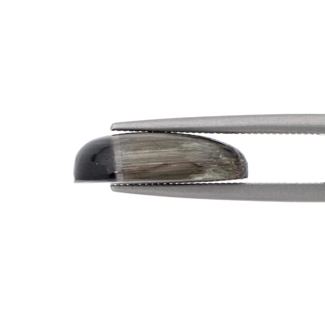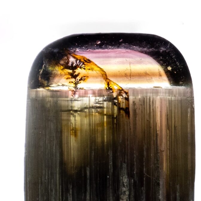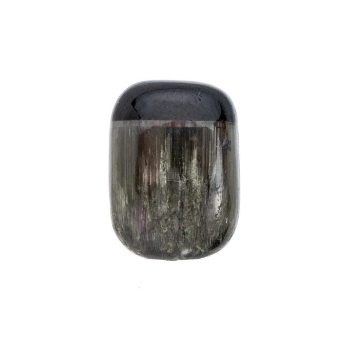 いかに言葉を尽くしても、このトルマリンの美しさは語り尽くせません。まるで、精巧に作られたかのように、一筋の銀色の光芒でピタリと止まるシャトヤンシー。一見色彩がないのに、光の角度によって突然現れる、いかにもトルマリンらしい複雑な色彩美。シャトヤンシーの上にもほんのりと色彩が踊り、全く新しいトルマリンの魅力を発見できる稀有なルースになっています。