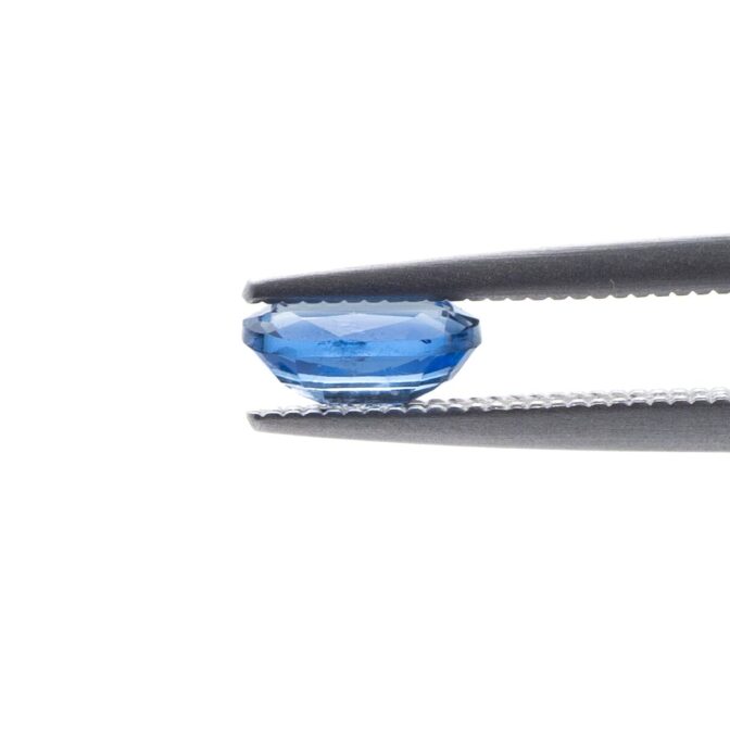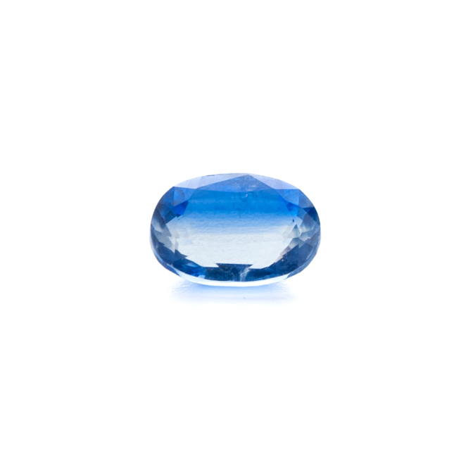 王道オーバルファセットのルースは、ネイビーブルーからクリアになだらかに変化するグラデーションカラーが優しい印象。透明感あふれる光で周囲を照らし出し、心まで明るくなります。安定感のある形ながら、ジュエリーに仕立てる場合は縦使いと横使いでは大きく印象を変えます。縦づかいならクラッシックで品の良い印象に。横使いだとカジュアルで軽やか。大きさがあるので、リングやペンダントトップ、どちらでも素敵です。