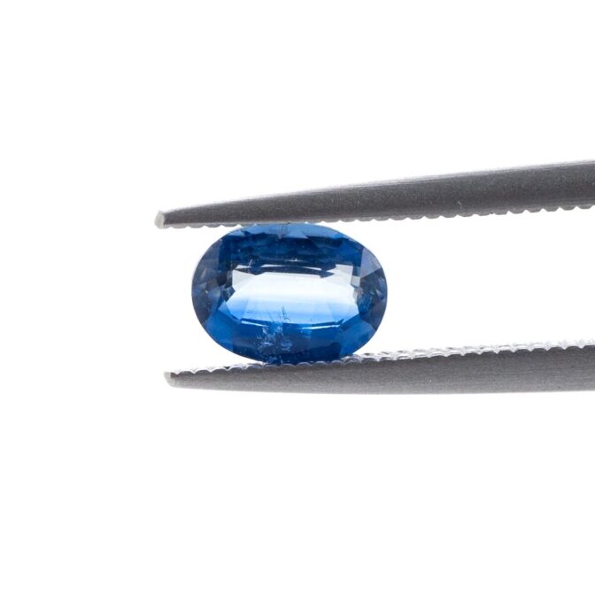 石の組成上クラックや線条痕が多く、不透明な原石が多いカイヤナイト。もちろん、銀色の独特な輝きを放つ線条痕はとても素敵。ですが、キラキラと輝く深く透明なネイビーブルーのカイヤナイトは格別に美しく、ファセットカットの底まで吸い込まれてしまいそう。肉眼で確認できるインクルージョンがほとんどなく、強く明るい色彩を純粋に楽しめます。