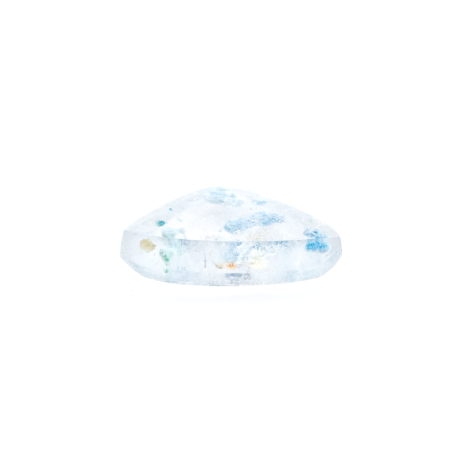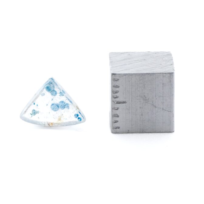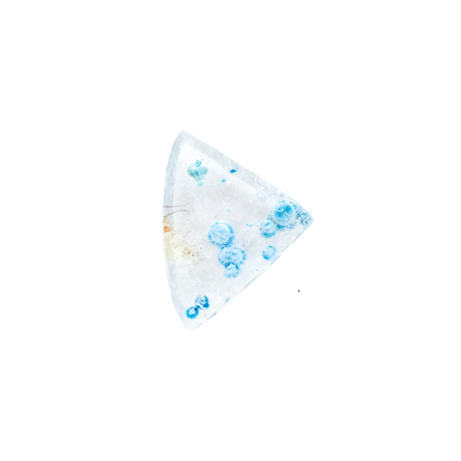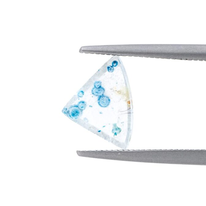まるでシュワシュワはじけるサイダーのよう。インクルージョンがキラキラと輝くクォーツの中に、鮮烈なパライバブルーのギラライトが泡のようにポップに踊ります。インクルージョン(不純物)がある石でありながらも透明感があり、ギラライトの存在感が際立つ逸品。日の光に透かすと白く輝くクォーツを背景に、可愛らしい水玉模様がフレッシュさを添える、希少なルースです。