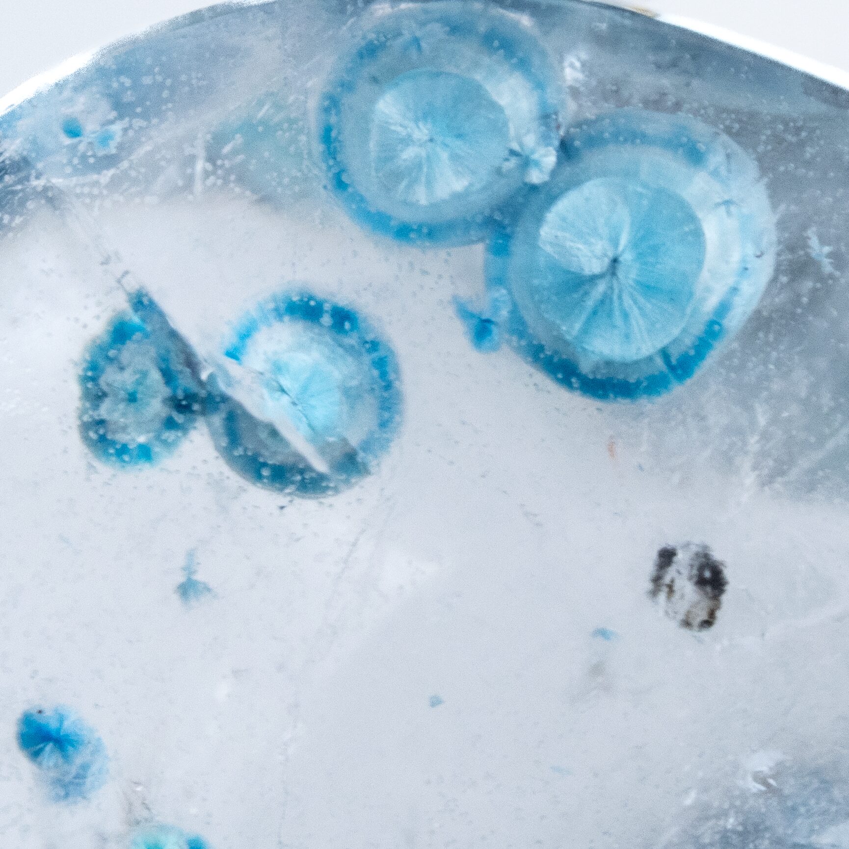 透明なクォーツの中に、鮮烈なパライバブルーの結晶が、泡のようにポップに踊ります。