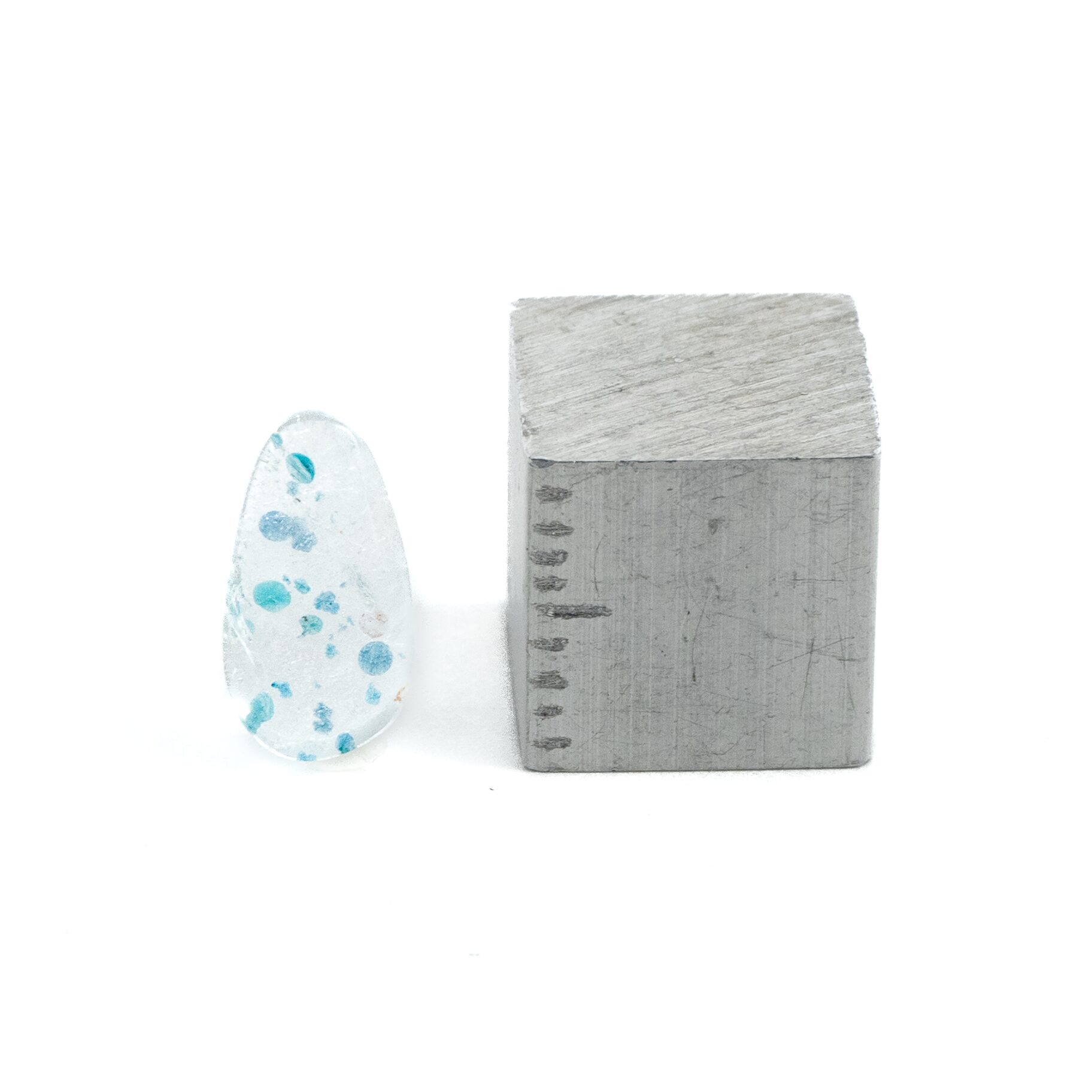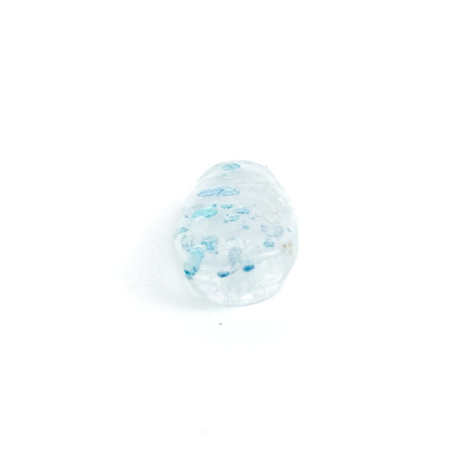 透明なクォーツの中に、鮮烈なパライバブルーの結晶が、泡のようにポップに踊ります。