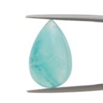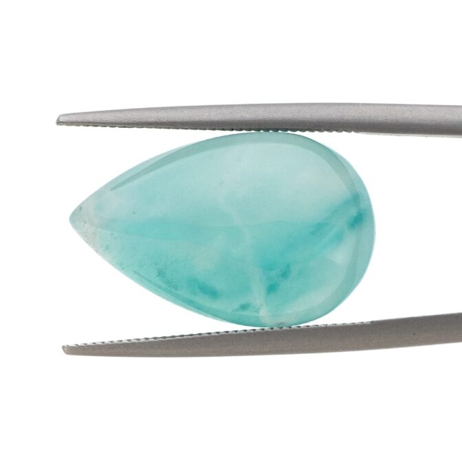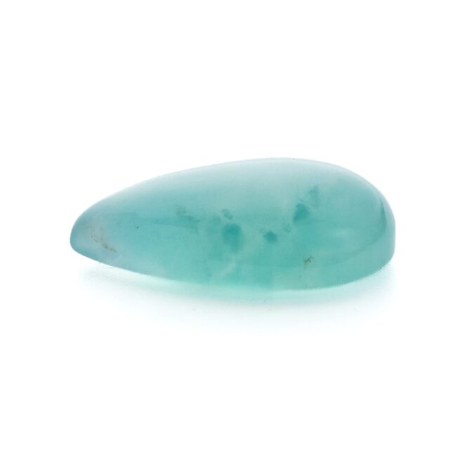 2000年代に新たに見つかった比較的新しい宝石、アクアプレーズ。カルセドニーの仲間で、名前がよく似ているクリソプレーズとは、実は兄弟のような間がら。クリソプレーズの発色にはニッケルが関わっており、鮮やかなアップルグリーンになります。アクアプレーズはクリソプレーズとは違って青みが強く、この色はクロムにより発色しています。