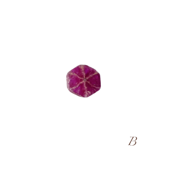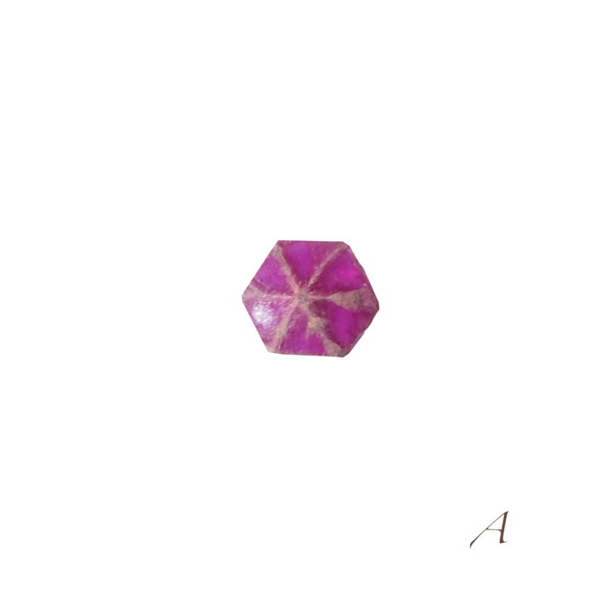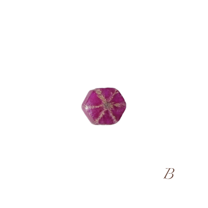 真紅の鮮やかな石の中に6条のラインがはっきりと浮かび上がるトラピッチェルビー。かの有名なルビーの産地、ミャンマーのモゴック産です。