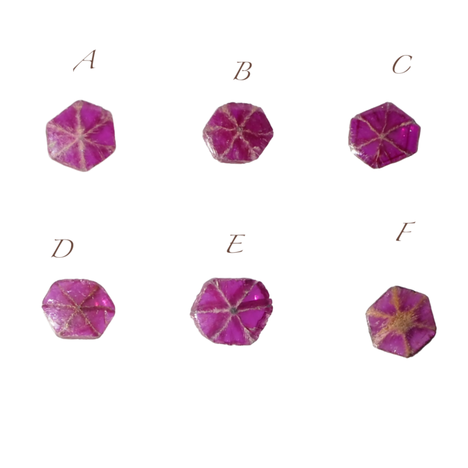 トラピッチェの模様はルビーの結晶が成長する時にインクルージョンが入り込んで出来たもの。従ってルースにしたときにインクルージョンが多く、あまり透明度と色が良くない場合が多いのです。