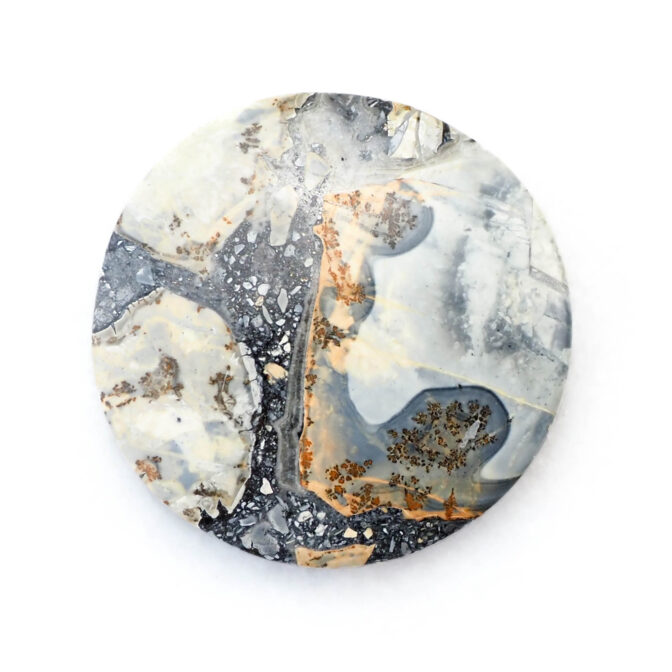 マリガノジャスパーは模様の美しさを楽しむ石。よって、大きいサイズの方がその麗しいモザイク模様を堪能できる!と思っているのはまるむ商会の個人的な思い入れかもしれません。しかし、大きくても厚みがないので、重々しくならず、ジュエリーお仕立て派のご要望にも応えるポテンシャルがあるルースです。ワイヤーラップとの相性も抜群。もちろん、額装などでインテリアにしても楽しめます。マリガノジャスパーがもつ模様のようにさまざまな楽しみ方ができる奥深い魅力を持つルースです。