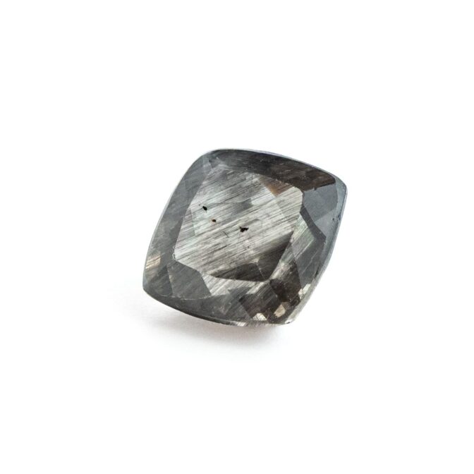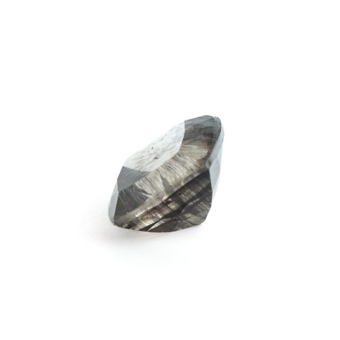 個性的ですが、元々の透明度があり、黒い針が密集している部分と透明な部分のコントラストが美しい。そして、しっかりとした研磨で表面は滑りを帯びたような、なめらかな輝き。うっすらとグレイを感じさせるグリーンの落ち着いたカラー。どれをとってもまるむ商会が大好きなテイストです。慌ててそのロットを根こそぎ確認したのですが、こんなにも素敵な黒い針が入っているのは、こちらの一粒だけ。あとはずべてクリーンなグリーンのアパタイトでした。オーナーさんに聞いてみるも、他に見たことがないとのこと。偶然が重なっての自然の造形美、一筋縄ではいきません。