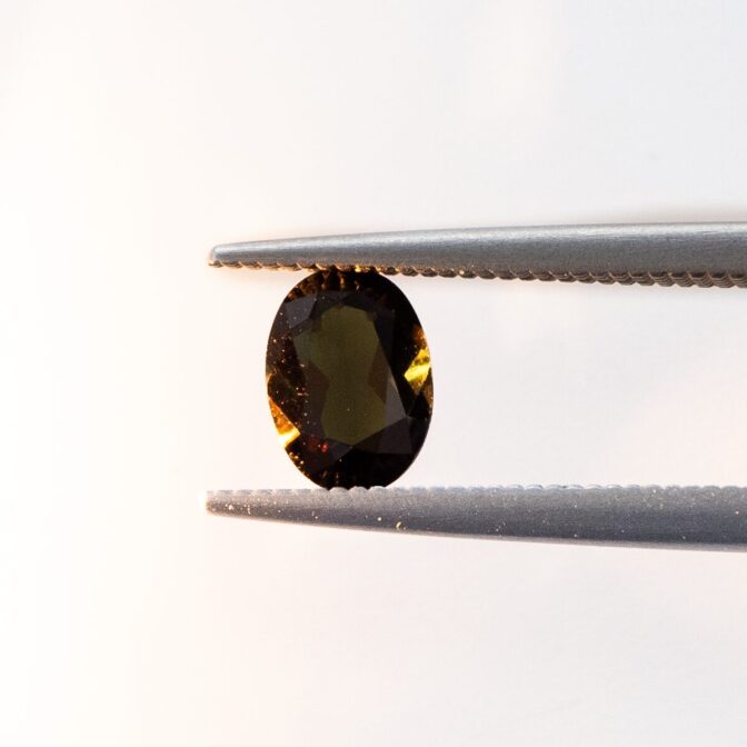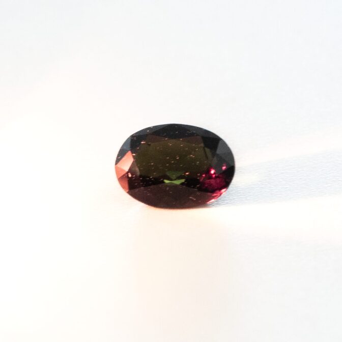 とてもレアで滅多にお目にかかることができないカラーチェンジトルマリン。美しいラウンドブリリアントカットにカットされているので、ジュエリーに加工できるのも魅力。角度によって色の輝きがほのかに変わるので、リングにすると良いですよ。もちろん、ルースのままコレクションピースに加えるのも素敵です。
