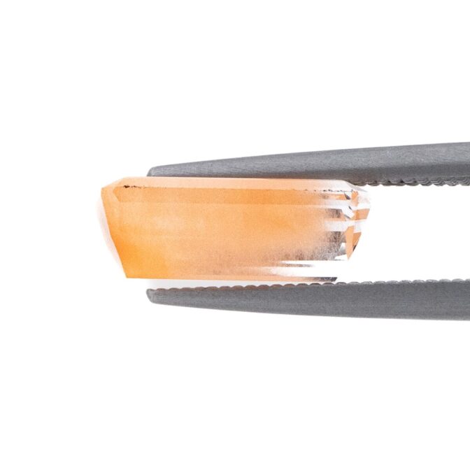 ところが、これがツーソンマジックでしょうか。端正なエメラルドカットを施され、桜ピンクのインクルージョンが、春を待ち侘びるこの季節にぴったりの風情。ブラジル産の澄み切ったクリアな水晶と、優しく肌馴染みの良い桜色の組み合わせが劇的に美しく、ジュエリーにしたらとても映えそう。落ち着いているのに華やかさがある色合いは、ピンクを身につけるのは少し気恥ずかしい大人世代にもお勧めです。