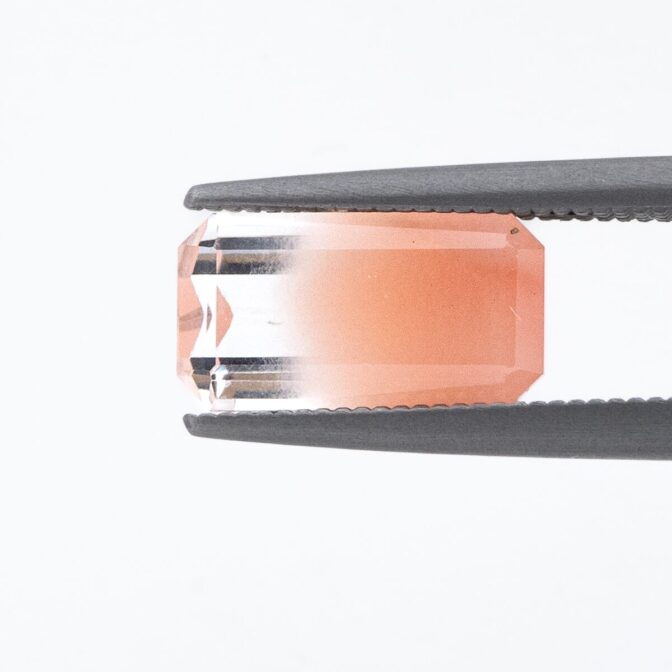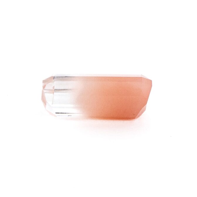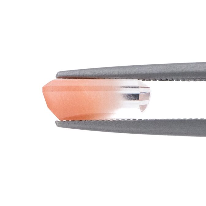 ところが、これがツーソンマジックでしょうか。端正なエメラルドカットを施され、桜ピンクのインクルージョンが、春を待ち侘びるこの季節にぴったりの風情。ブラジル産の澄み切ったクリアな水晶と、優しく肌馴染みの良い桜色の組み合わせが劇的に美しく、ジュエリーにしたらとても映えそう。落ち着いているのに華やかさがある色合いは、ピンクを身につけるのは少し気恥ずかしい大人世代にもお勧めです。
