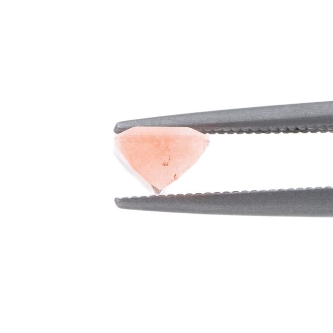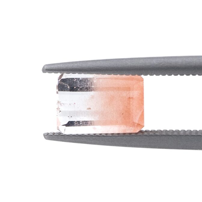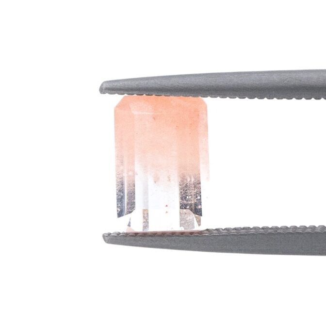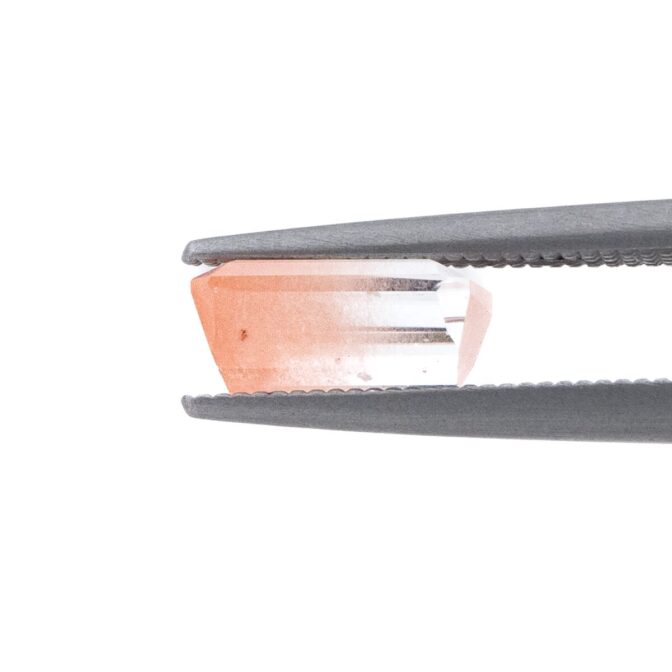 ところが、これがツーソンマジックでしょうか。端正なエメラルドカットを施され、桜ピンクのインクルージョンが、春を待ち侘びるこの季節にぴったりの風情。ブラジル産の澄み切ったクリアな水晶と、優しく肌馴染みの良い桜色の組み合わせが劇的に美しく、ジュエリーにしたらとても映えそう。落ち着いているのに華やかさがある色合いは、ピンクを身につけるのは少し気恥ずかしい大人世代にもお勧めです。