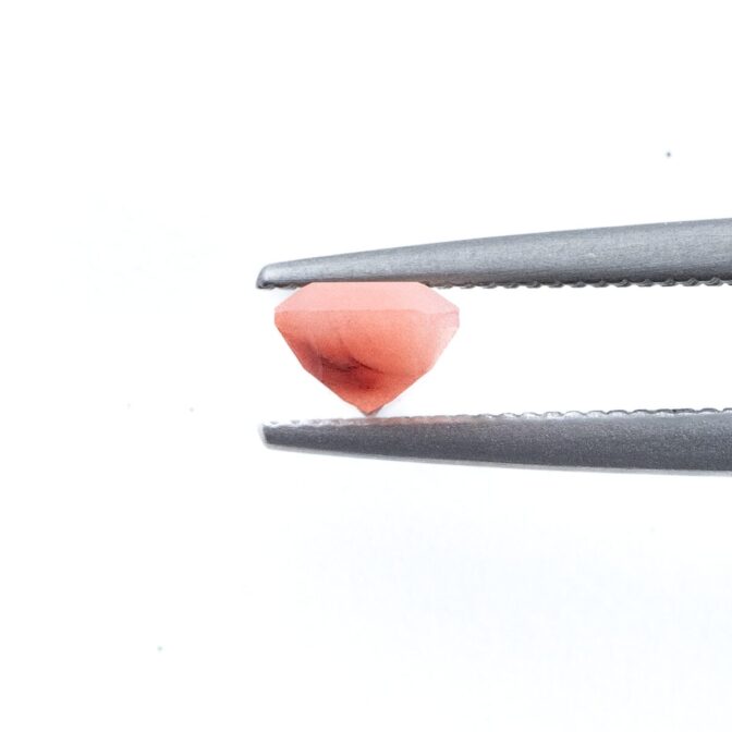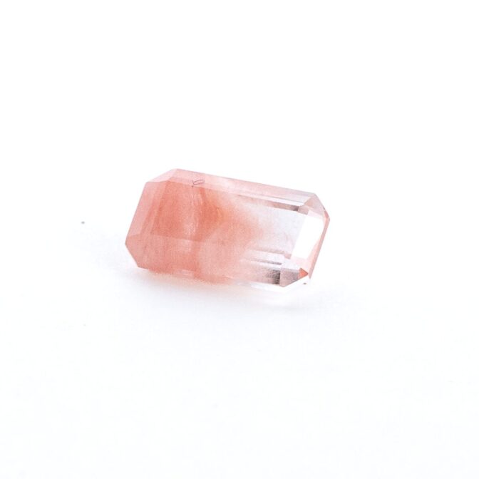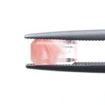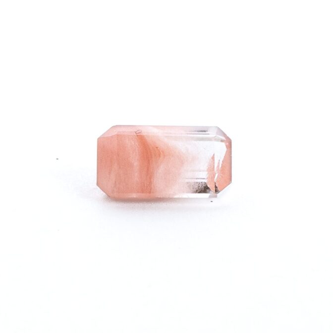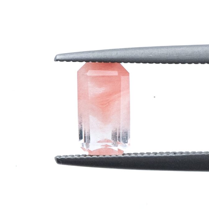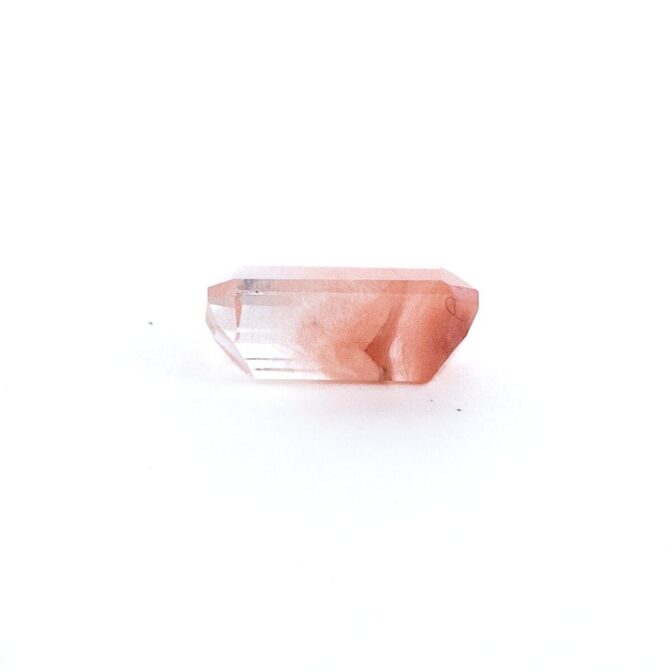 ところが、これがツーソンマジックでしょうか。端正なエメラルドカットを施され、桜ピンクのインクルージョンが、春を待ち侘びるこの季節にぴったりの風情。ブラジル産の澄み切ったクリアな水晶と、優しく肌馴染みの良い桜色の組み合わせが劇的に美しく、ジュエリーにしたらとても映えそう。落ち着いているのに華やかさがある色合いは、ピンクを身につけるのは少し気恥ずかしい大人世代にもお勧めです。