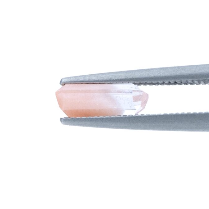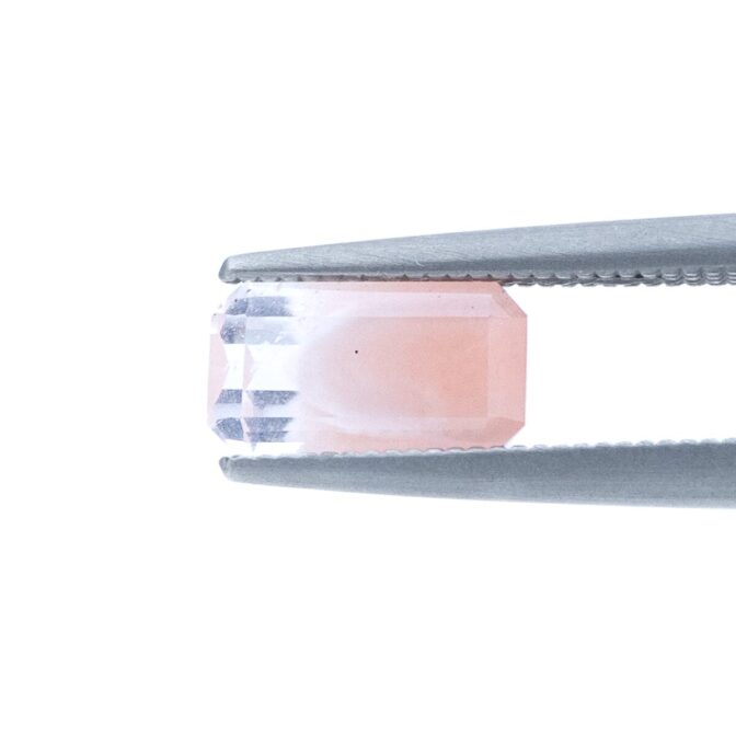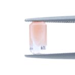 ところが、これがツーソンマジックでしょうか。端正なエメラルドカットを施され、桜ピンクのインクルージョンが、春を待ち侘びるこの季節にぴったりの風情。ブラジル産の澄み切ったクリアな水晶と、優しく肌馴染みの良い桜色の組み合わせが劇的に美しく、ジュエリーにしたらとても映えそう。落ち着いているのに華やかさがある色合いは、ピンクを身につけるのは少し気恥ずかしい大人世代にもお勧めです。