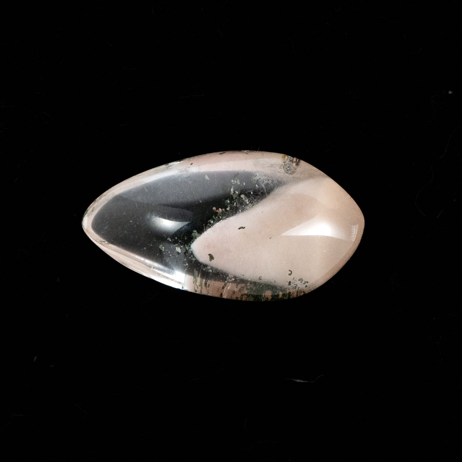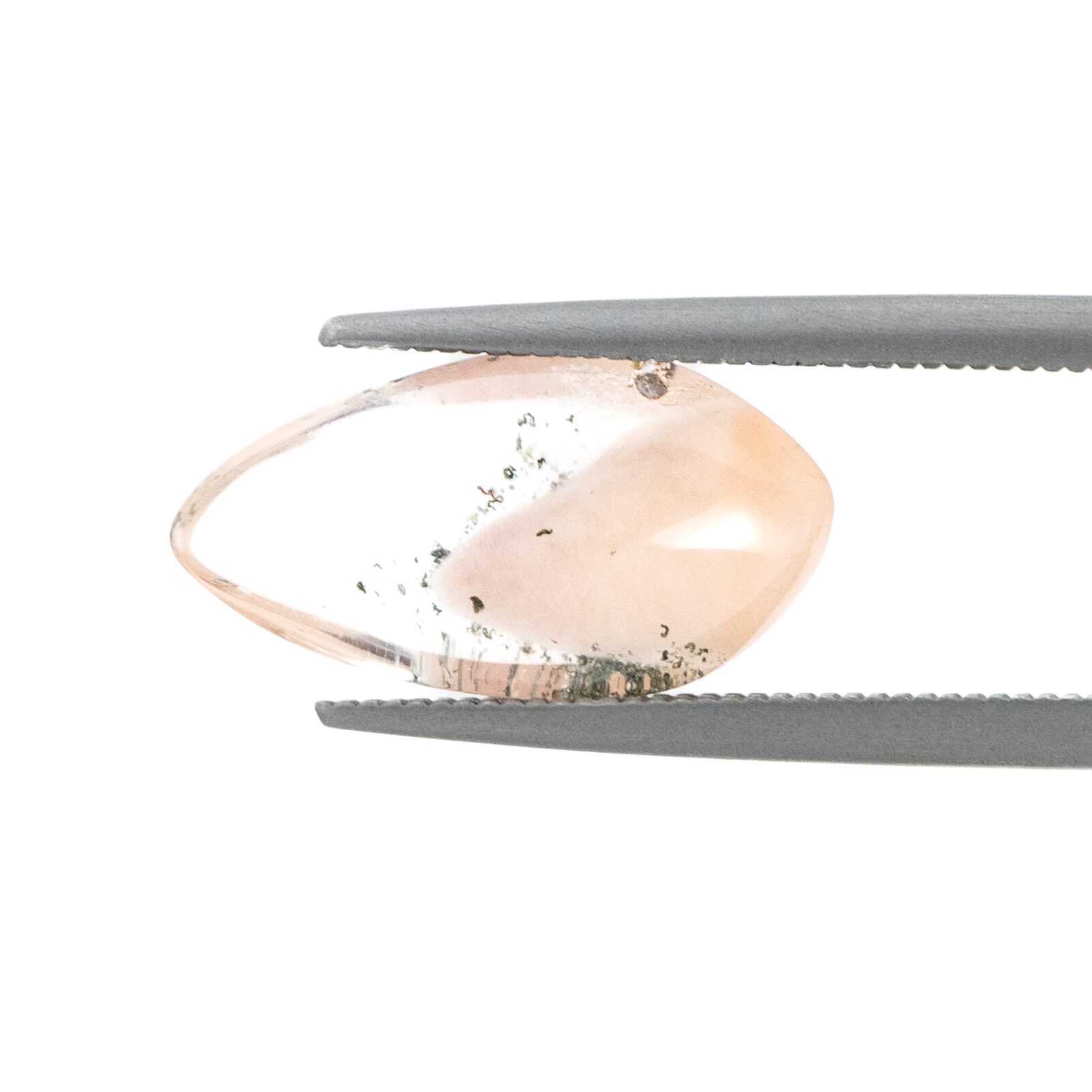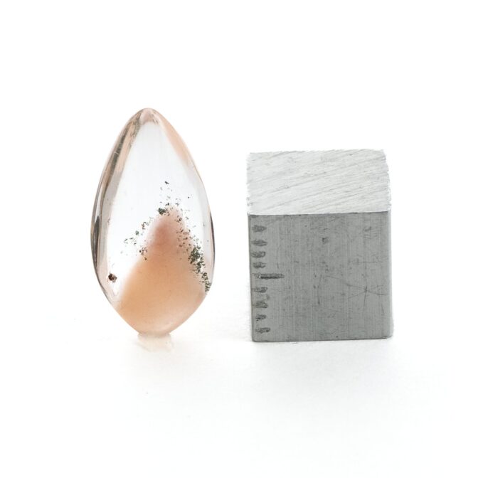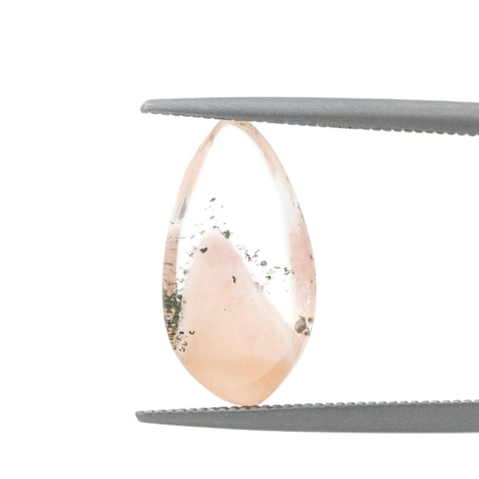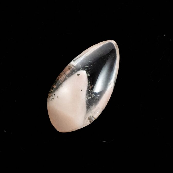 クォーツのクリアなきらめきと、ピンクの入り方で甘くも辛くも自由自在。普段はピンクの石にはあまり惹かれないのですが、このアンフィボールインクォーツだけは特別です。シャープでカラーレスな輝きに、胸が踊るような桜ピンクをほんの少し。この絶妙なバランスが例えようもない魅力を醸し出しでいます。ぜひ、リングやペンダントなどに加工して、春の訪れを待ちたいおしゃれなルースです。