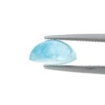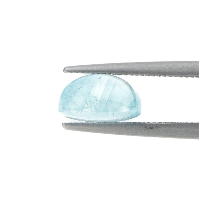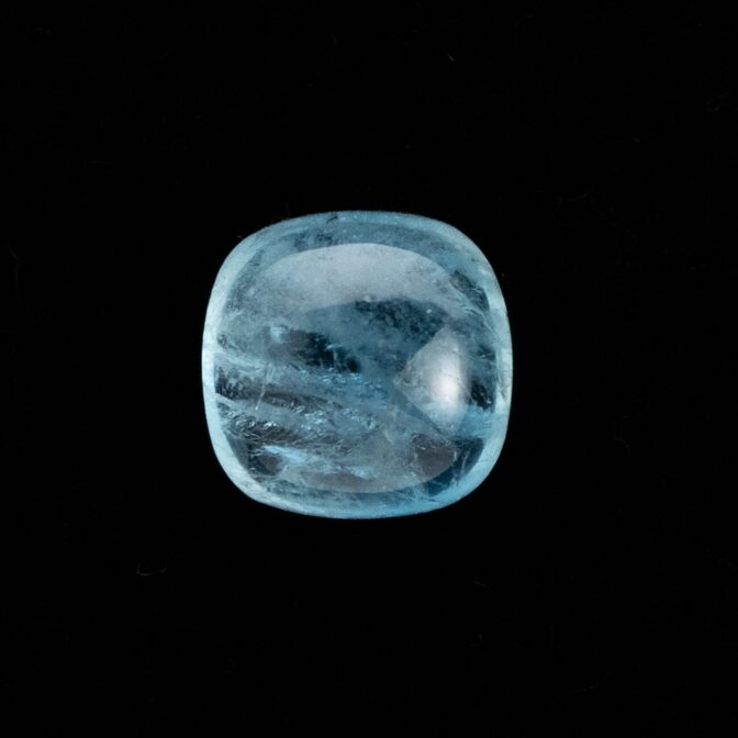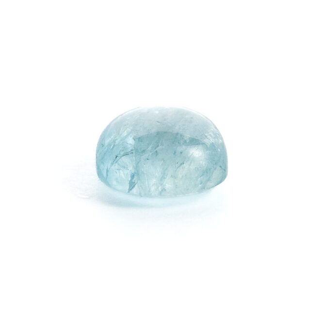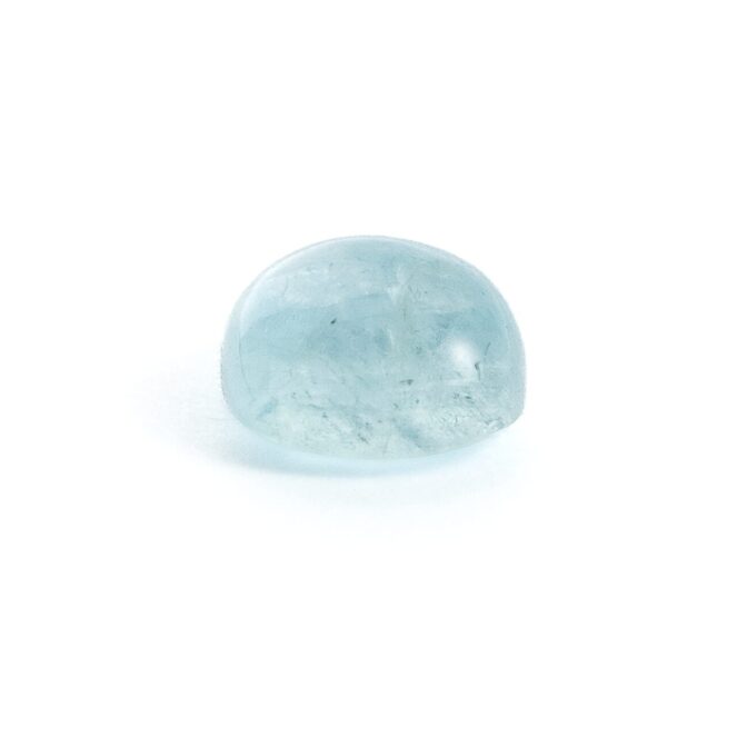 今回買い付けたミルキーアクアマリンは、ふんわり花曇りの霞んだような半透明。でも時折、透明なアクアマリンの要素も顔をのぞかせます。その対比はとても印象的で、青空に浮かぶ雲を写し取ったかのよう。やや厚みのあるぷりぷりカボションなのも、この透明と半透明が生み出すメリハリの美しさを引き出しています。ふっくら優しいシルエットが、光を柔らかく捉え、内側に溜め込みながら輝くのを眺めていると、こちらまで優しい気持ちになってきます。