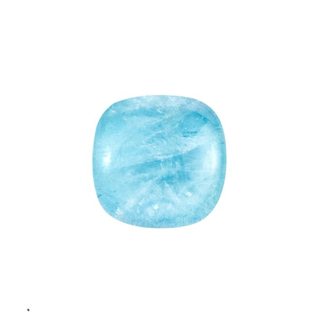 ミルキーアクアマリンは正式名称ではないため、厳密な定義はありません。インクルージョンによって、透明度が低く見えるアクアマリンの原石からカットされます。レアストーンでも、産地が限られているわけでもないのですが、なぜかその姿を見ることはとても稀です。特に、美しいものとなると滅多に入荷しません。アクアマリンといえば、透明で一片の曇りもあってはならない、という先入観があるのかもしれませんね。でも、美しいブルーと透け感を残しながらも、柔らかに光を捉える独特の質感が、優しいく瑞々しい魅力を湛えています。